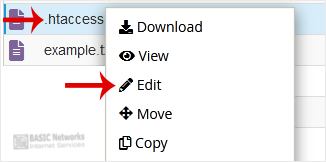 5. Right-click on the dot htaccess file and then Edit in the Context Menu.