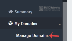 3. After a successful login, select Manage Domains from the My Domains drop-down menu.
