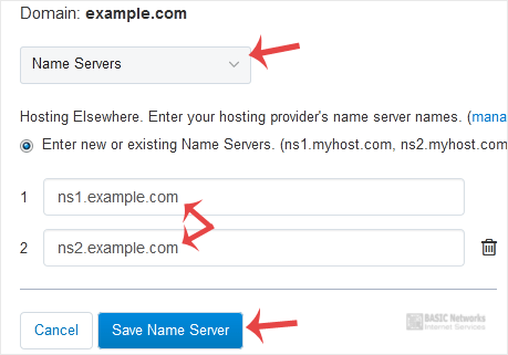6. Enter your nameservers in the provided text boxes, and click on Save Name Server to save your changes.