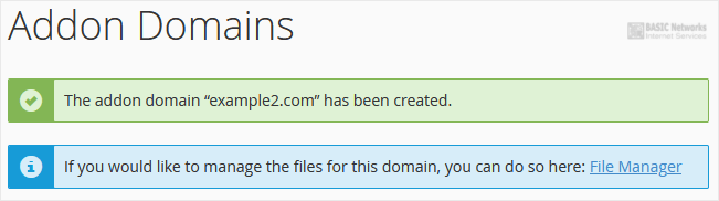 You should see a message that the addon domain has been created.