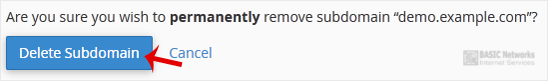 5. For confirmation, click on Delete Subdomain to remove your subdomain permanently.