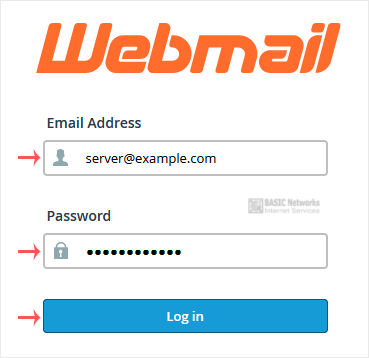 1. Open http://example.com/webmail, replace example.com with your domain name, enter your full email address and password in user login details, and click on Login.