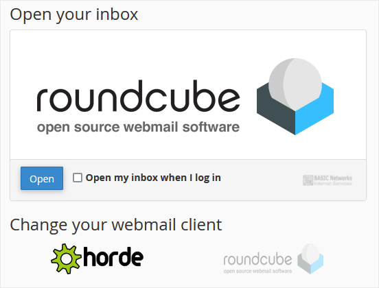 2. From the cPanel's Webmail Page, click on any Webmail email reader such as Horde, Roundcube, or any other available application.