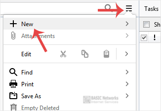 2. Click on the menu icon located on the right side of the screen and choose New. A drop box will open.
