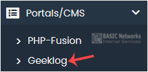 4. On the left side, locate the Portal/CMS category. Click on it and then on the Geeklog link that appears.