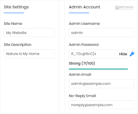 • Admin Username: Your new Geeklog username (for security reasons, do not use the administrator or the admin username).