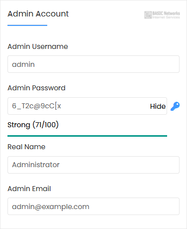 • Admin Username: Your new Bolt username (for security reasons, do not use the administrator or the admin username).