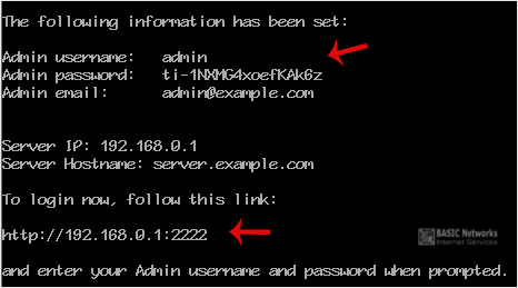 After the installation is done, it will display the login credentials and the URL on-screen. You can access it by changing the URL in your browser to http://IP-Address:2222 (Replace IP-Address text with your server IP or hostname).