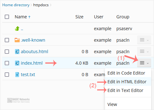4. Hover over the file. The corresponding line will be highlighted. Next, click on the Menu Icon , located at the end of the line, and the Context Menu will open. Click on Edit In HTML Editor or choose any other suitable editor.