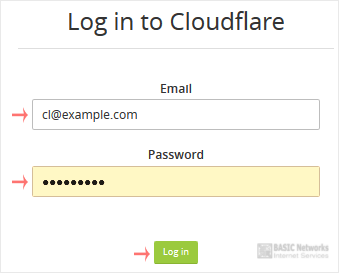 4. From the login page, enter your Cloudflare credentials and then click on Log in.